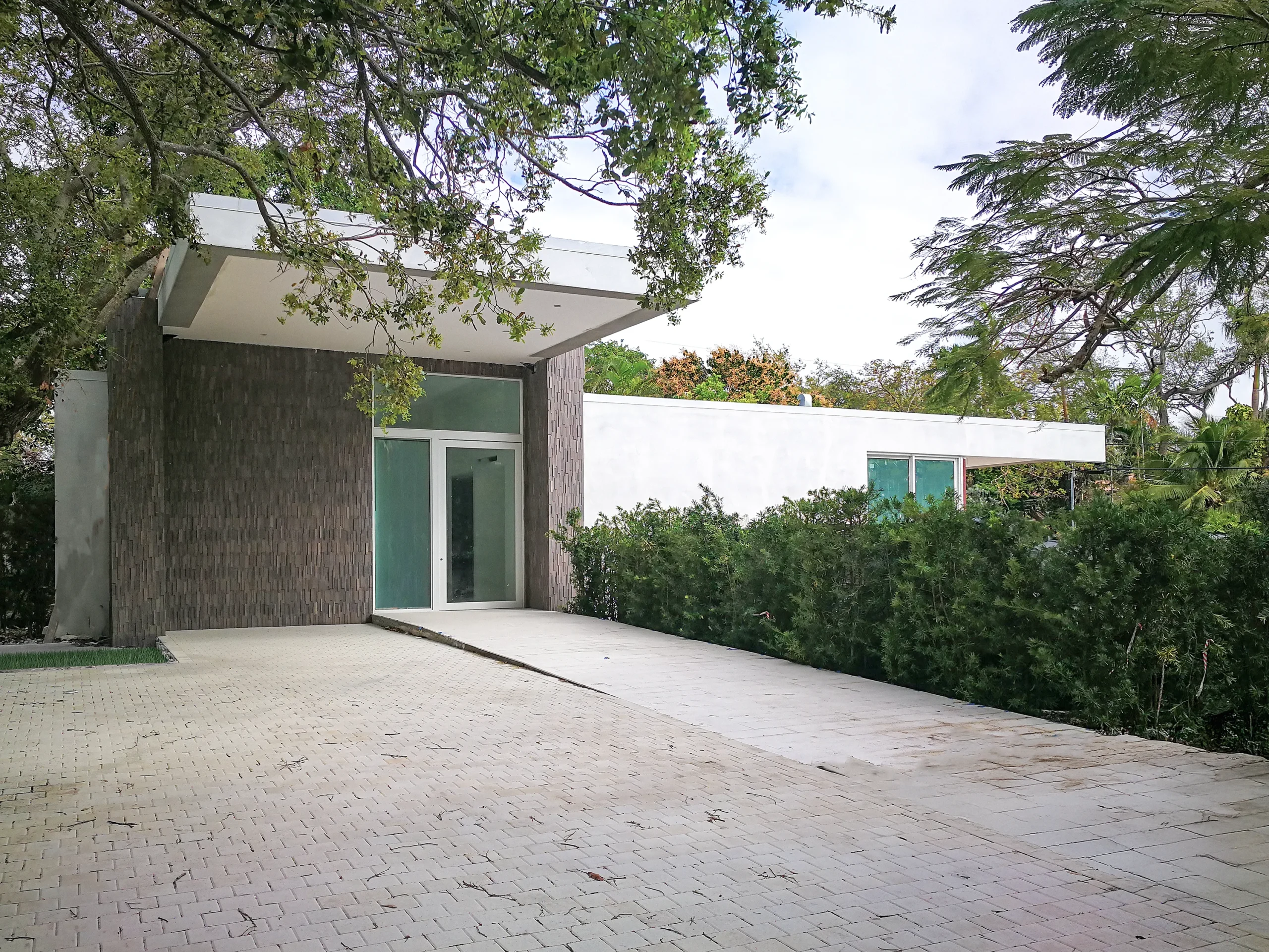 Ubicada en el entorno tropical de Coconut Grove, esta reforma integral rinde homenaje a la luz intensa y la expansión vital del verano. El proyecto se manifiesta como un volumen horizontal de un blanco puro, cuya sobriedad se ve interrumpida únicamente por el refugio de sus grandes volados y la presencia de una majestuosa Poinciana que articula el acceso.